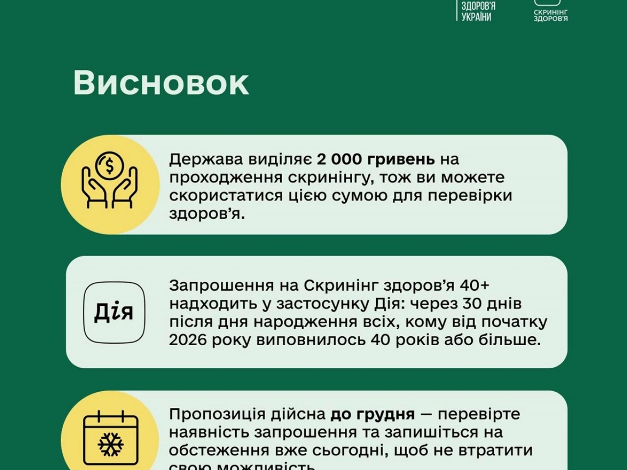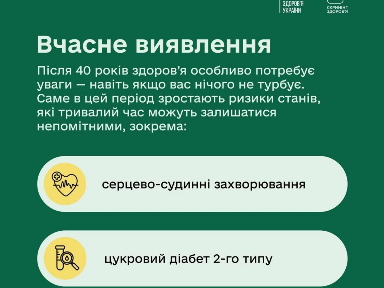 З початку року в Україні стартувала програма Скринінг здоров’я 40+. Це можливість безоплатно перевірити стан свого організму та вчасно оцінити індивідуальні ризики.