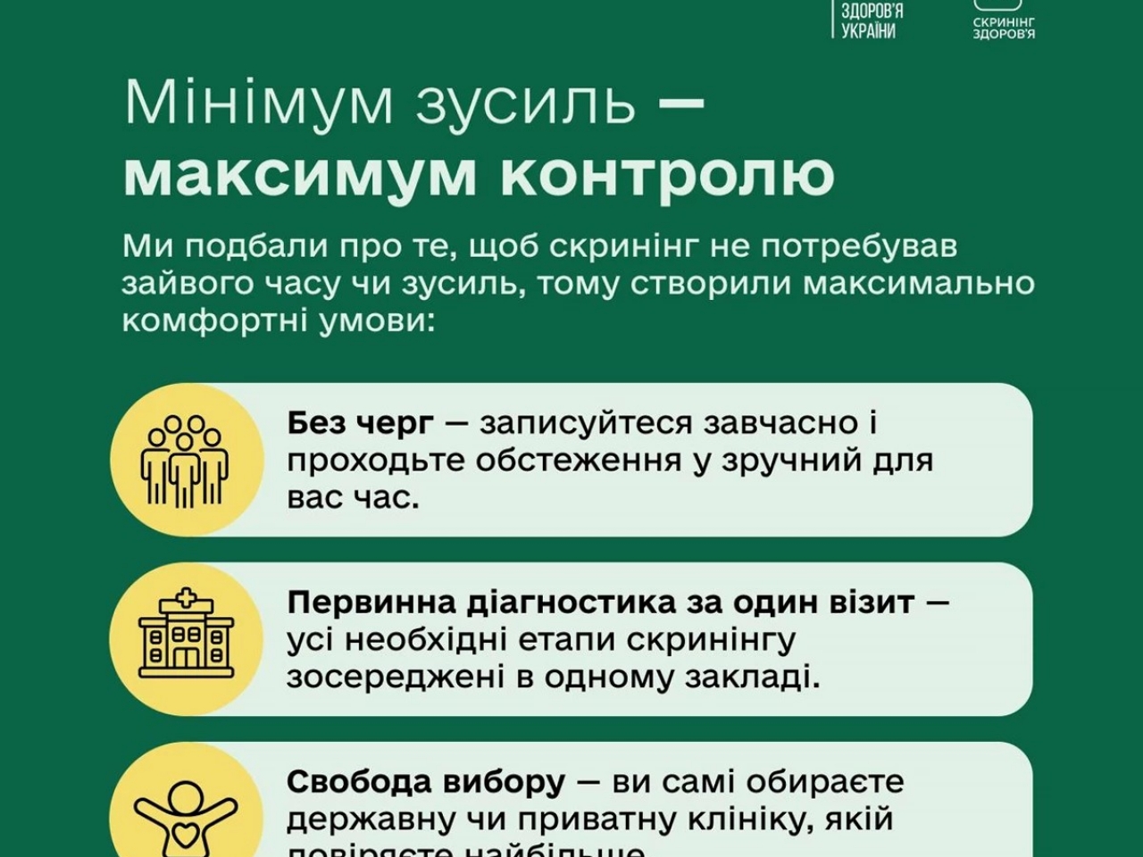 Ключові аргументи, які пояснюють цінність скринінгу та підкажуть, чому варто взяти участь у цій національній програмі вже зараз наведено в інфографіці.