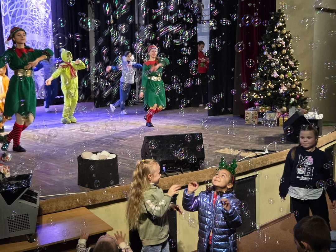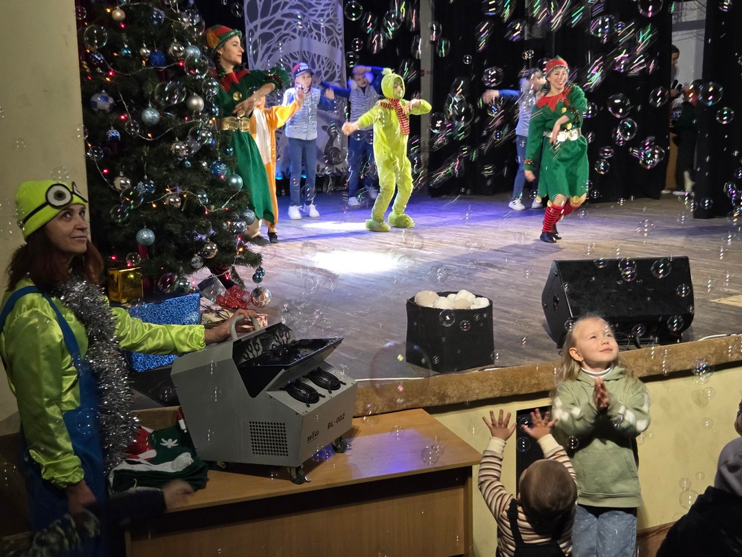Юні глядачі поринули у вир пригод разом із казковими героями. Під час інтерактивної вистави діти спостерігали за витівками Грінча, грали в імпровізовані сніжки, ловили веселкові мильні бульбашки. Дитячий сміх та іскри в очах стали найкращим доказом того, що свято вдалося.