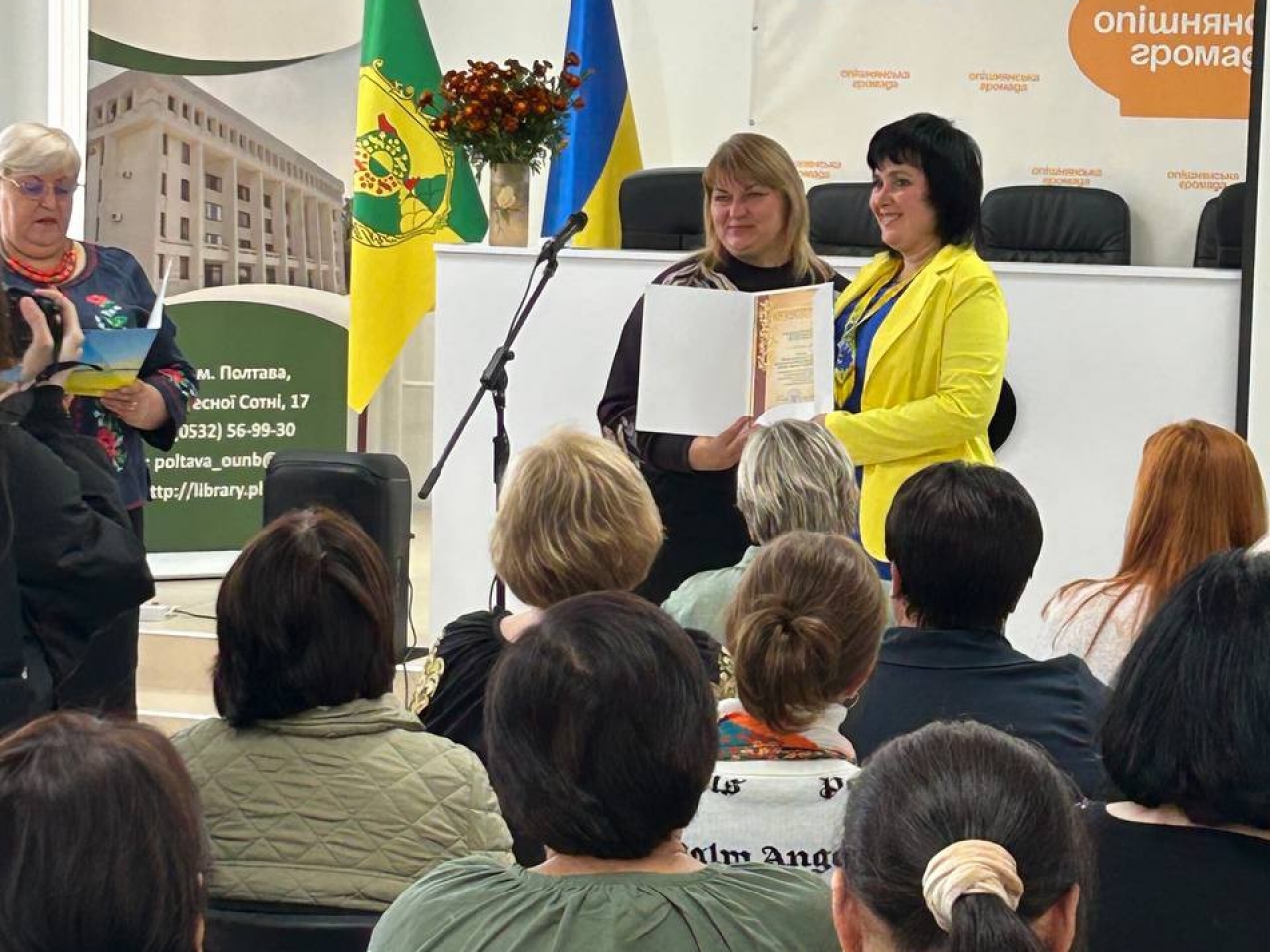 Приємною частиною форуму стало нагородження. Грамотою Департаменту культури і туризму Полтавської ОВА відзначено колектив Публічної бібліотеки ім. Д. Гурамішвілі та бібліографа Ірину Карач – за вагомий внесок у розвиток культури громади й високий рівень професійної майстерності. А користувачі бібліотек Миргородської громади отримали грамоти та подяки за участь у конкурсах, організованих Полтавською обласною універсальною науковою бібліотекою ім. І.П. Котляревського та Полтавською обласною бібліотекою для юнацтва ім. Олеся Гончара.