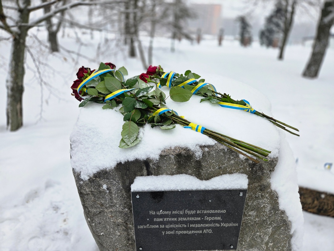 Пам’ятна хода продовжилася на Алеї Слави, де учасники схилили голови перед портретами сучасних Захисників і Захисниць, та біля пам’ятного каменя воїнам АТО/ООС.