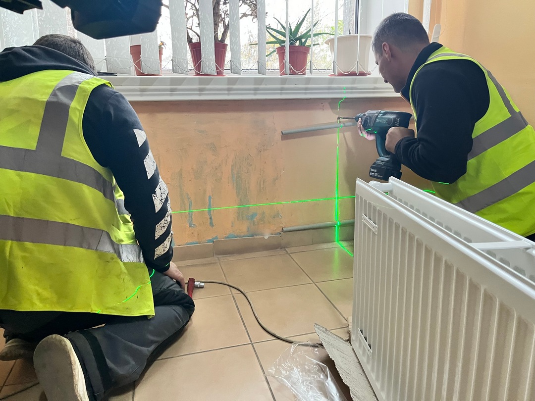 Радіатори, які встановлюють, — зйомні. Їх можна замінити без зупинки всієї системи. Вони обладнані терморегулюючими кранами, що дозволяє ефективніше використовувати енергію. Після завершення утеплення фасадів персонал зможе самостійно налаштовувати комфортну температуру в приміщеннях без потреби частого провітрювання.