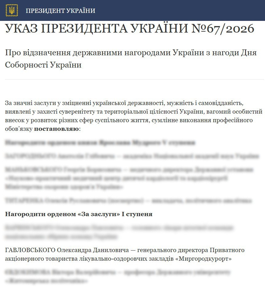 22 січня Президент України підписав Указ Про відзначення державними нагородами України з нагоди Дня Соборності України. У числі нагороджених і Генеральний директор Приватного акціонерного товариства лікувально-оздоровчих закладів «Миргородкурорт» Олександр Гавловський. Олександр Данилович удостоєний орденом «За заслуги» І ступеня.