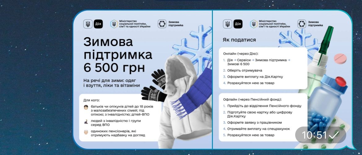 Відсьогодні стартує прийом заявок на одноразову виплату 6 500 грн у рамках програми «Зимова підтримка». Ця допомога — для тих, кому зараз найважче: