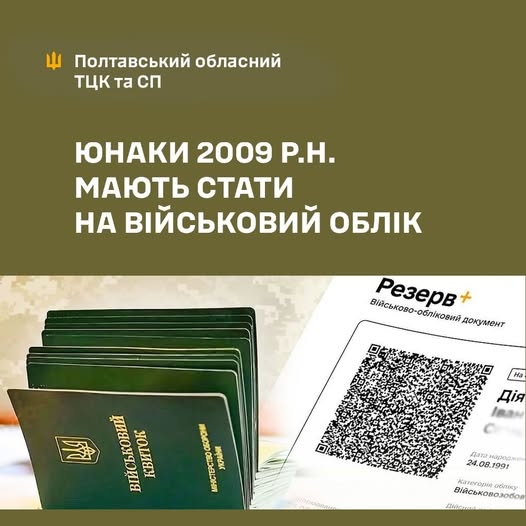 Громадяни України чоловічої статі, яким у 2026 році виповнюється 17 років, до 31 липня повинні стати на військовий облік призовників. Згідно з законом України «Про військовий обов’язок і військову службу», у 2026 році взяттю на військовий облік призовників підлягають усі громадяни, які народилися з 01 січня по 31 грудня 2009 року включно, а також громадяни старшого віку, які не були взяті на облік раніше.