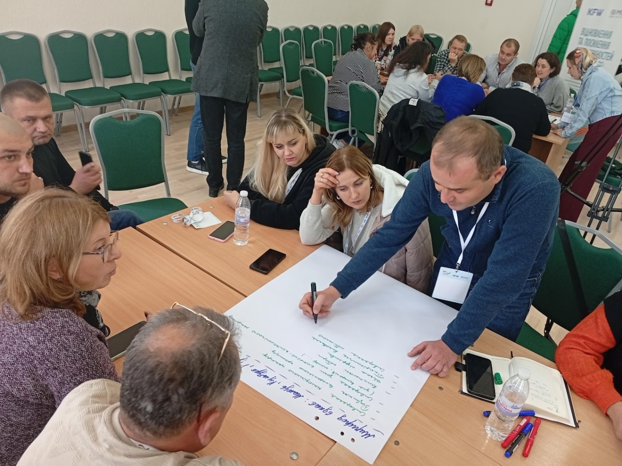 Важливою частиною заходу була робота учасників у форматі “Світового кафе”, де в малих групах обговорювали напрями розвитку громади за темами: економіка та інвестиції, соціальна сфера, освіта й безбар’єрність, інфраструктура та відновлення, молодь, культура, ветеранська політика, туризм та екологія.