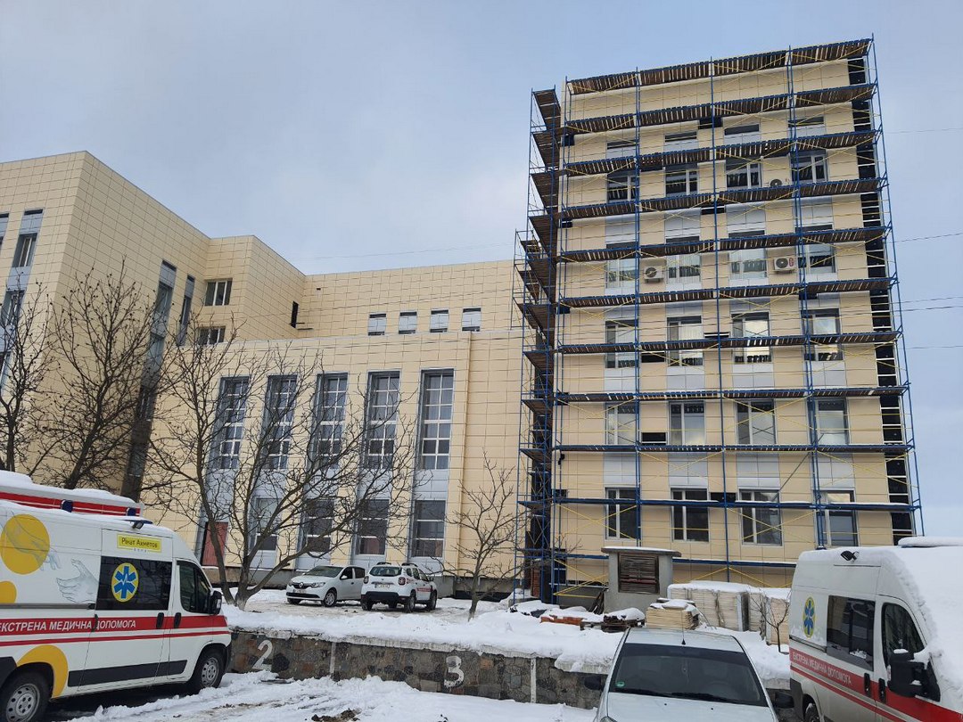 У межах реалізації державних програм відновлення продовжуються активні будівельні роботи у головному корпусі Лікарні інтенсивного лікування та у будівлі поліклініки. На обох об’єктах фахівці виконують чергові етапи реконструкції, спрямовані на покращення умов надання медичної допомоги та підвищення енергоефективності споруд.
