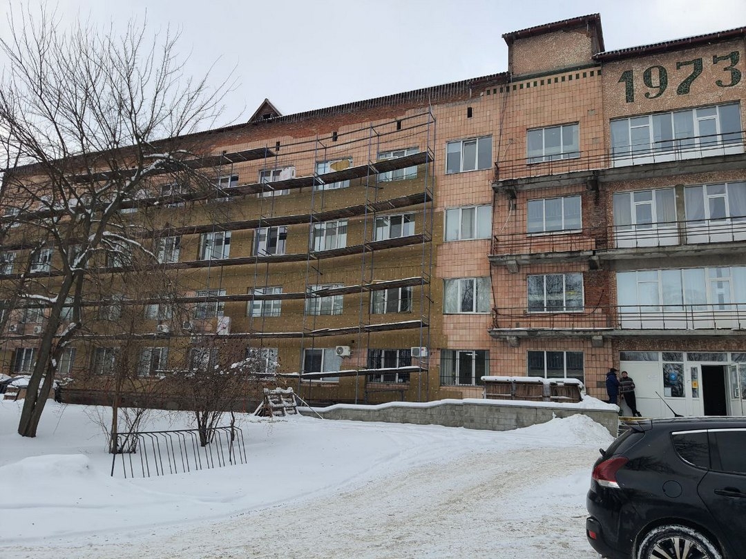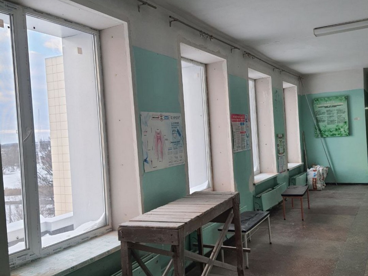 Паралельно з цим тривають роботи у будівлі поліклініки. Тут продовжується комплексне оновлення зовнішніх стін із використанням металевих касет та сучасних матеріалів для утеплення. Крім робіт на фасаді, майстри зосередилися на внутрішньому впорядкуванні віконних зон. У приміщеннях, де раніше встановили нові енергоефективні блоки, наразі облаштовують внутрішні відкоси та підвіконня. Це дозволить завершити герметизацію віконних прорізів і підготувати кабінети до подальшої експлуатації.