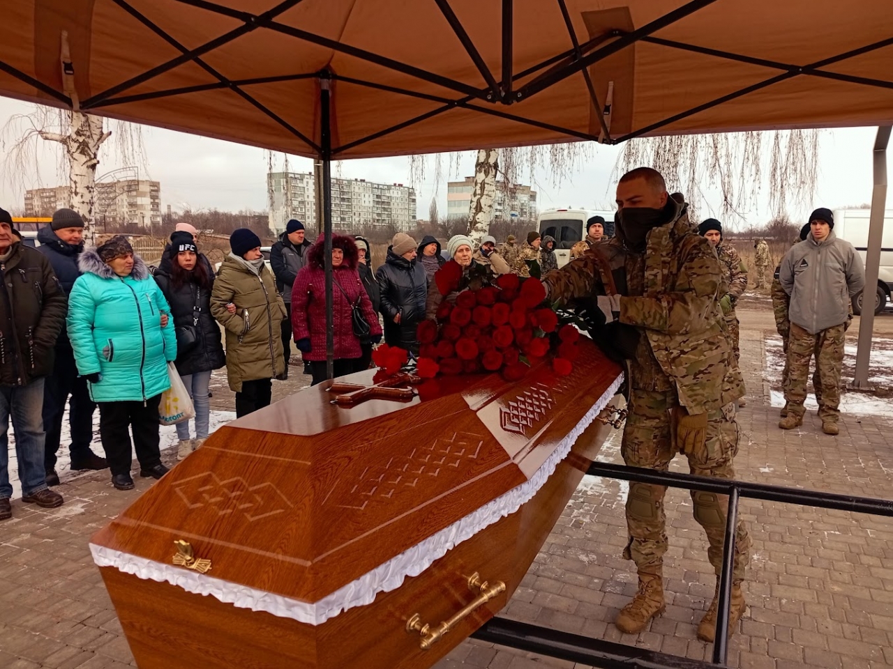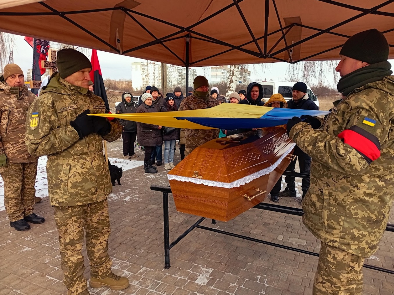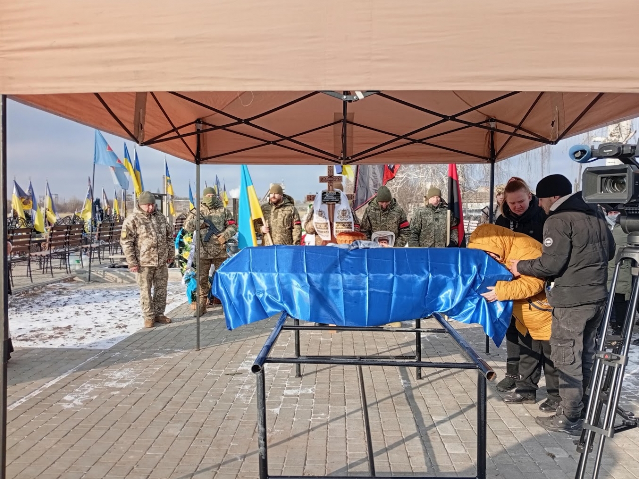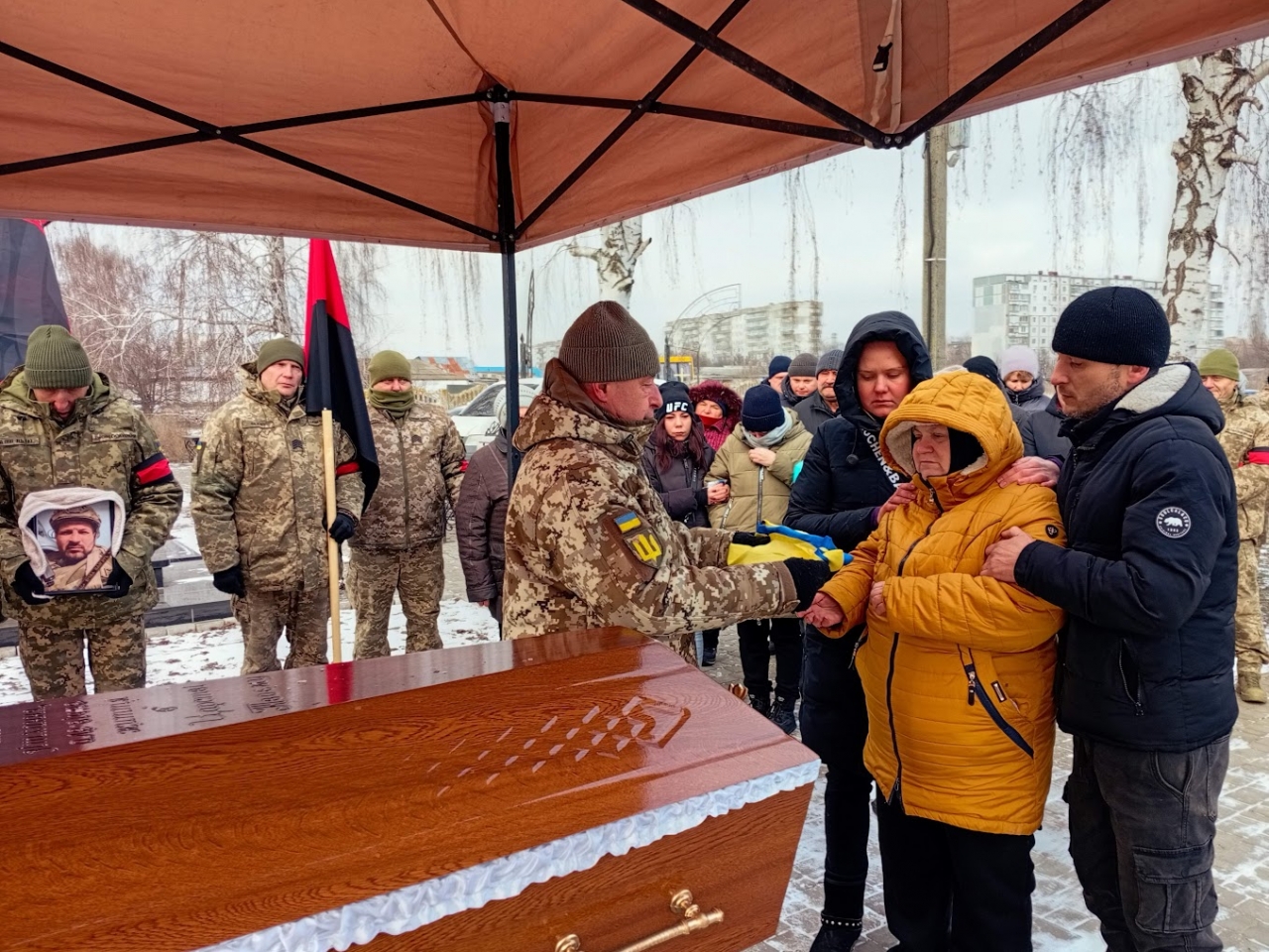 Під час поховання над могилою Героя пролунав військовий почесний салют. Представник Миргородського РТЦК та СП майор Олег Сисенко передав Прапор України, яким була вкрита домовина Захисника, його матері.