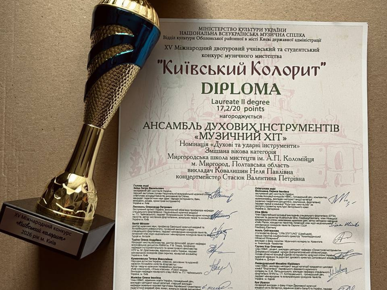 Вітаємо учнів і викладачів із вагомими результатами! Бажаємо не зупинятися на досягнутому, сміливо підкорювати нові сцени, розкривати свій талант і впевнено рухатися до нових перемог. Нехай кожен виступ приносить радість, визнання та натхнення.