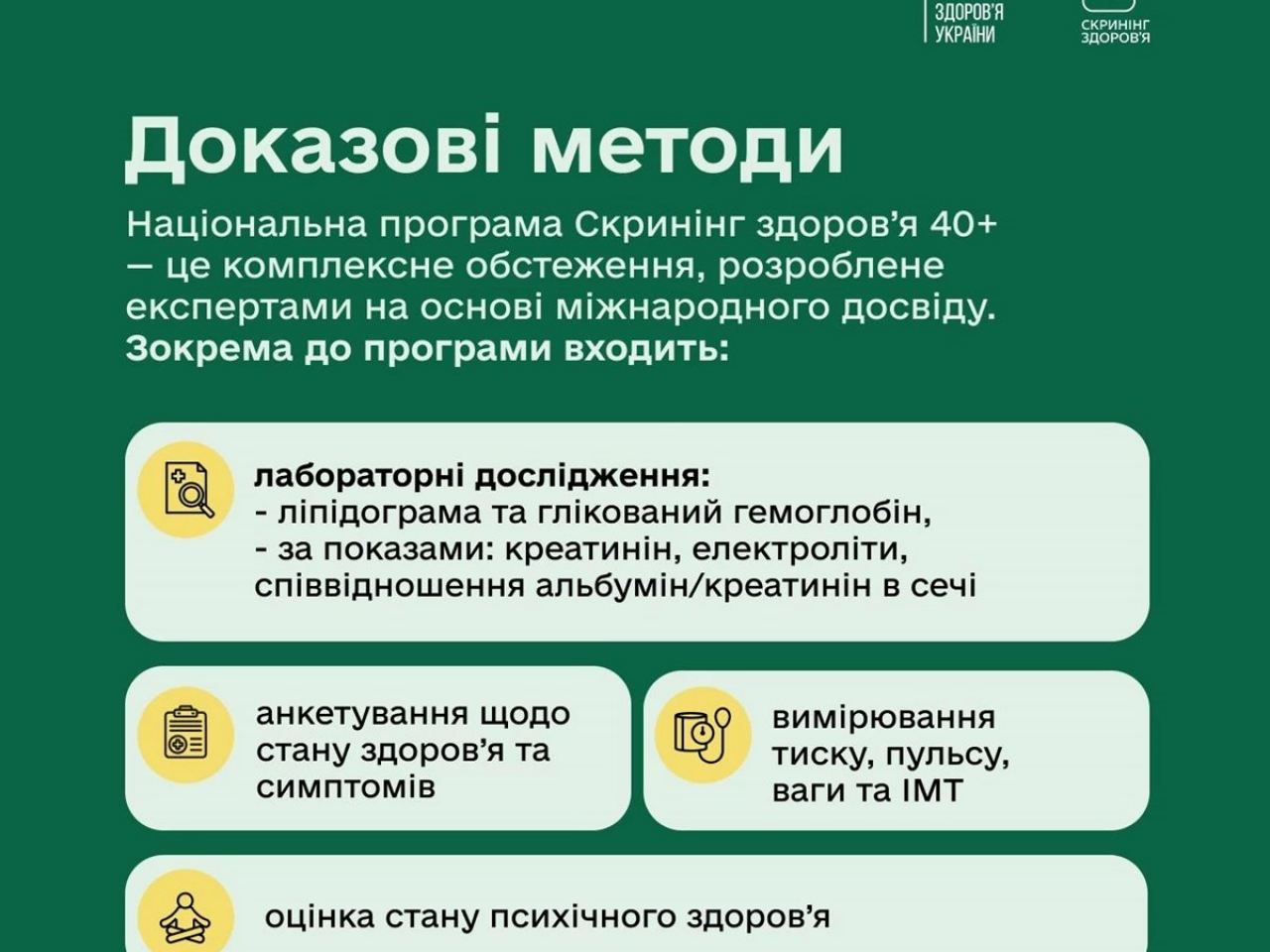 З початку року в Україні стартувала програма Скринінг здоров’я 40+. Це можливість безоплатно перевірити стан свого організму та вчасно оцінити індивідуальні ризики.